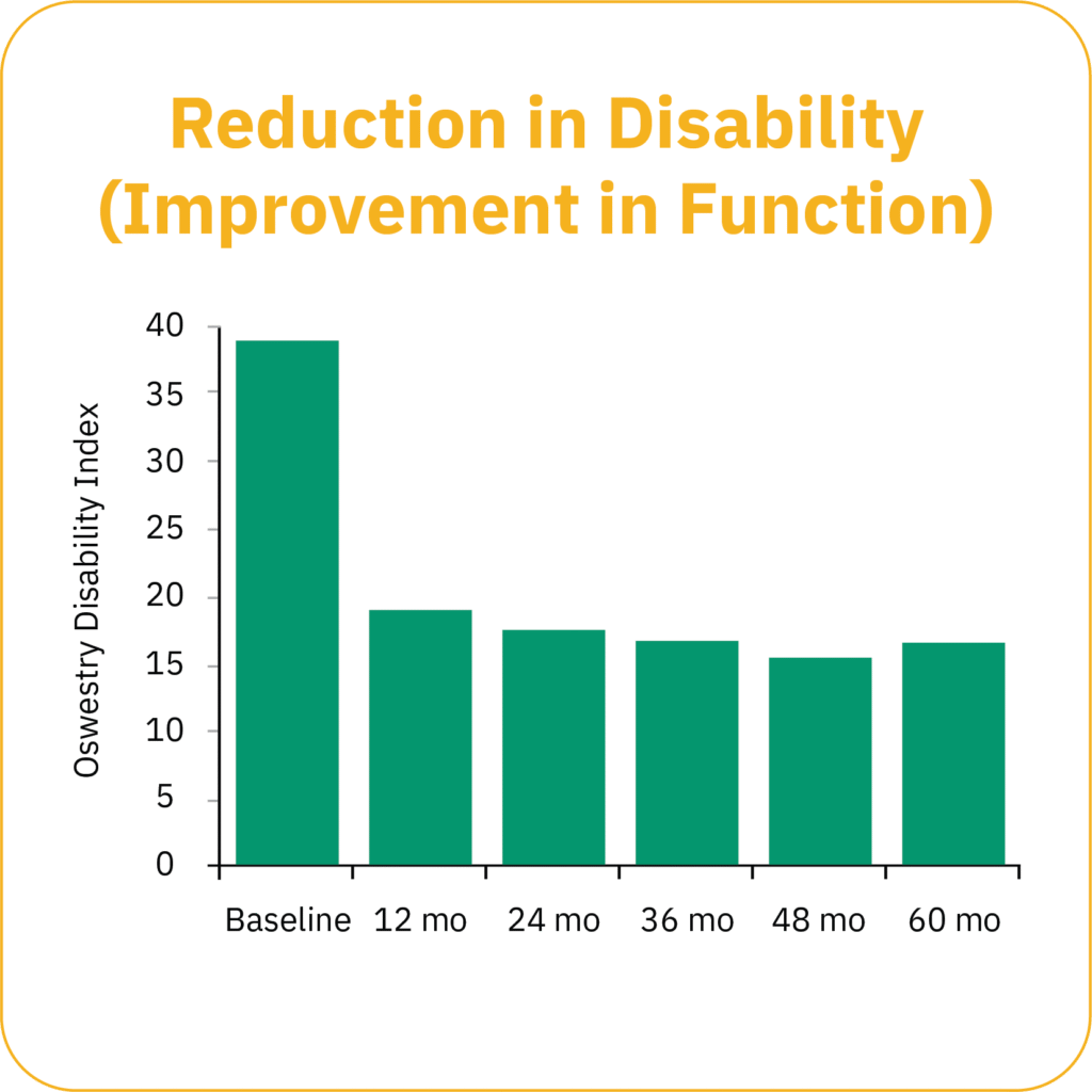 Most patients start to feel better and more confident in their activities between 6 and 16 weeks, but it can take longer for some. They usually notice their back pain decreasing soon after they feel an improvement in function. Clinical trials show that these improvements in function and pain continue to improve over time and are long lasting.