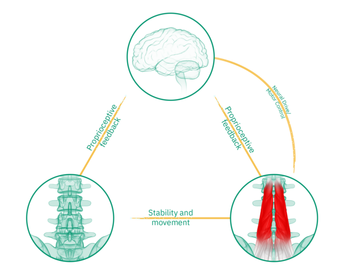 Die Dysfunktion des Multifidus-Muskels kann auf einen Verlust der neuromuskulären Kontrolle zurückzuführen sein. Dies kann zu einer mangelnden Unterstützung der Wirbelsäule führen, was eine unkontrollierte Belastung der Wirbelsäulengelenke und Bandscheiben zur Folge hat und schließlich zu mechanischen Schmerzen im unteren Rücken führt.