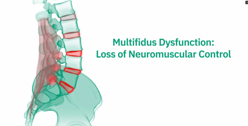 Multifidus Dysfunction can result from a loss of neuromuscular control. This can cause a lack of spinal support, leading to uncontrolled loading of spinal joints and discs, resulting in mechanical low back pain.