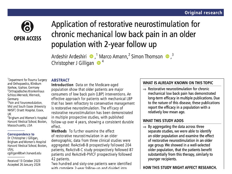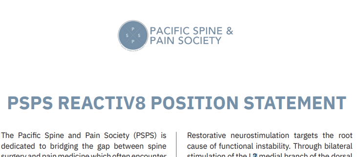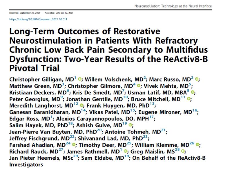 The ReActiv8-B trial “demonstrated clinical effectiveness as measured by substantial and durable improvements in pain, disability, and quality of life in a cohort of patients with a favorable benefit risk profile